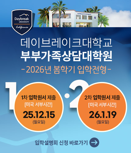 세계 최고 수준의 상담전문가를 양성하는 데이브레이크대학교입니다.